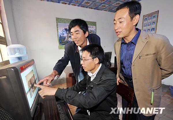 8月28日,李成(中)與合作社的社員研究肉牛品種。新華社記者 王鵬 攝