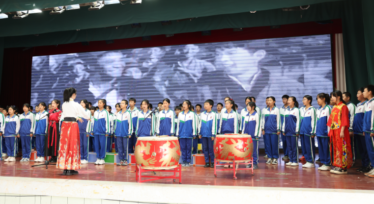 國防教育課後,英林學校學生接過『紅色接力棒』,同唱愛國歌曲的環節讓氛圍再昇溫。該校負責人走上臺寄語全校學生:『今天我們聽英烈故事、唱愛國歌曲,就是要讓紅色基因融入血脈。希望同學們記住,強國使命終有一天要交到你們手上,現在就要努力成長!』