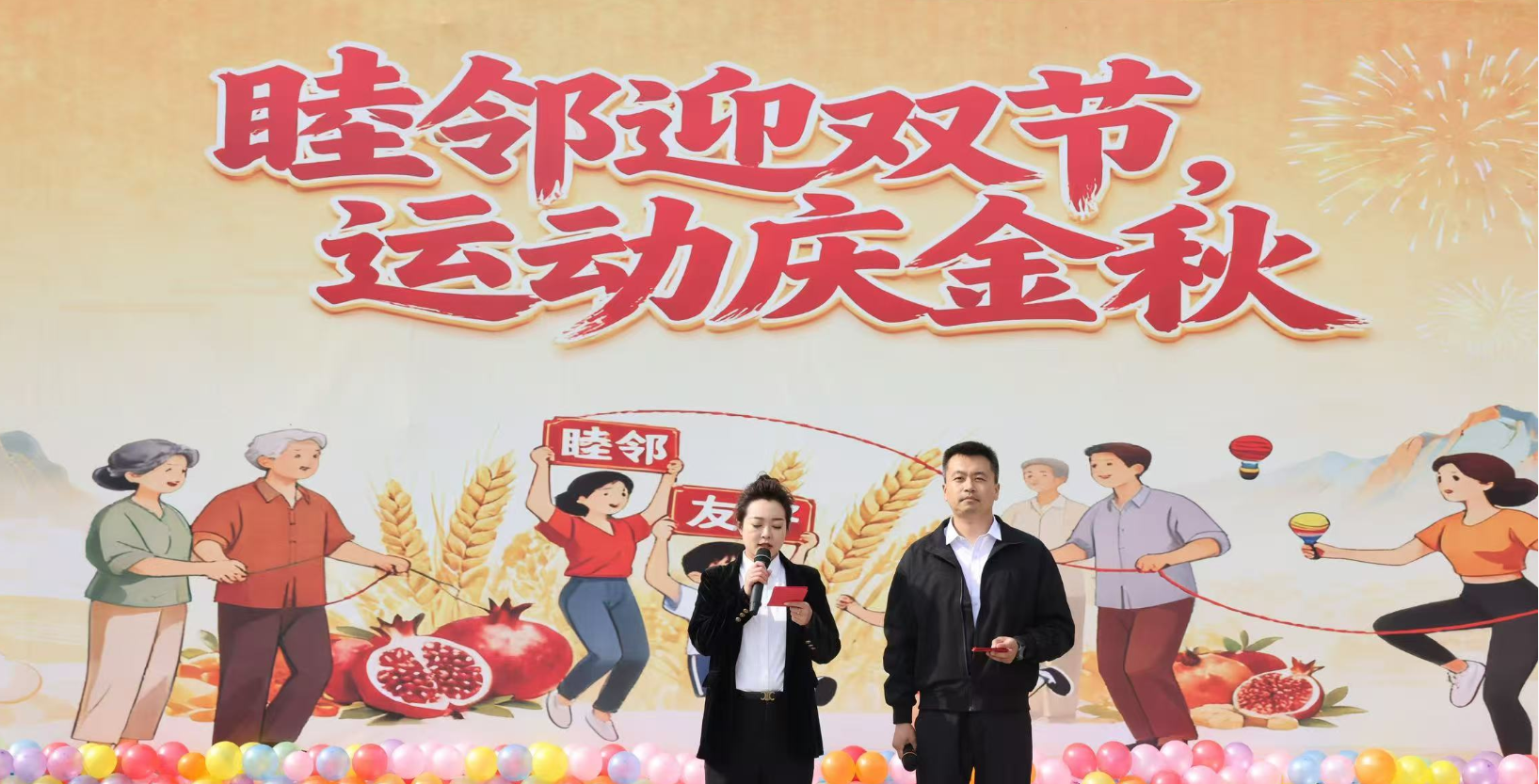 9月28日上午,麻山區吉祥廣場彩旗招展、歡聲滿場,由麻山街道黨(工)委主辦,建國社區黨委、中心社區黨委聯合承辦的『睦鄰迎雙節,運動慶金秋』趣味運動會熱鬧啟幕,兩社區居民歡聚一堂,共迎國慶、中秋雙節。