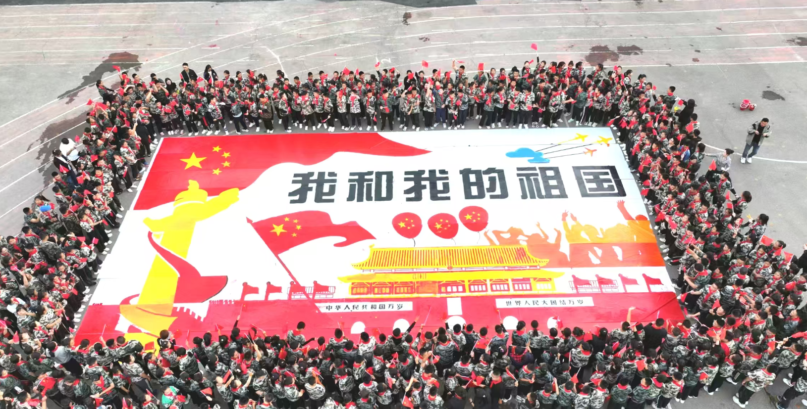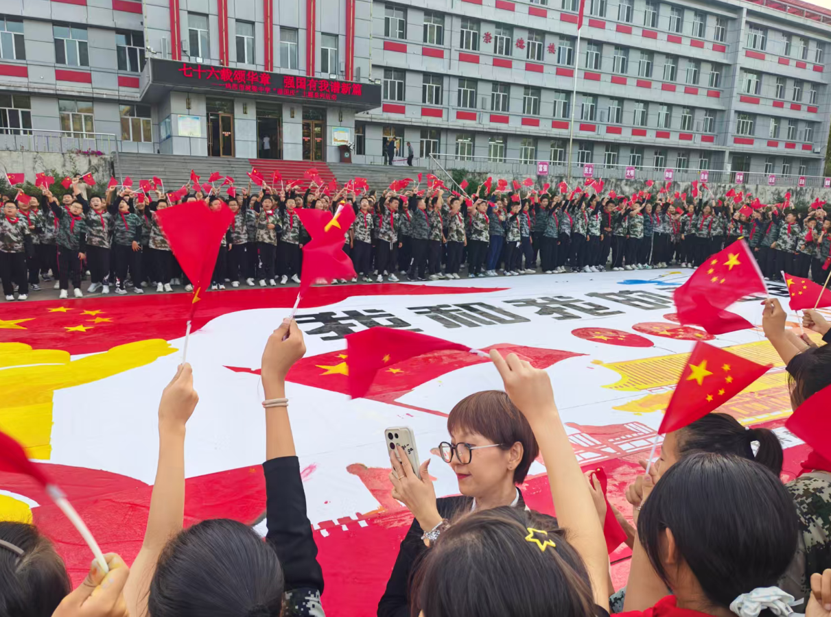 9月30日,市樹梁中學校園內紅旗如潮、歌聲震耳。在中華人民共和國成立76周年到來之際,學校以『昇國旗+千人奏唱』『集體繪巨畫』『紅歌合唱』三項特色活動,讓學子們用熾熱行動訴說愛國情,將對祖國的祝福融進每一段旋律、每一抹色彩。