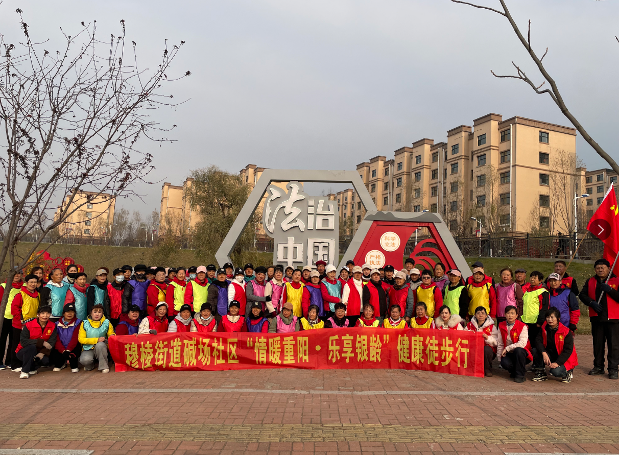 (張佳)為弘揚中華民族尊老敬老的傳統美德,豐富老年群體精神文化生活,推動全民健身理念向老年群體延伸,重陽節期間,穆棱街道鹼場社區組織轄區老年居民、老年黨員志願者等70餘人開展了『情暖重陽,樂享銀齡』健康徒步行活動,為轄區老年人送上節日的關懷與祝福。