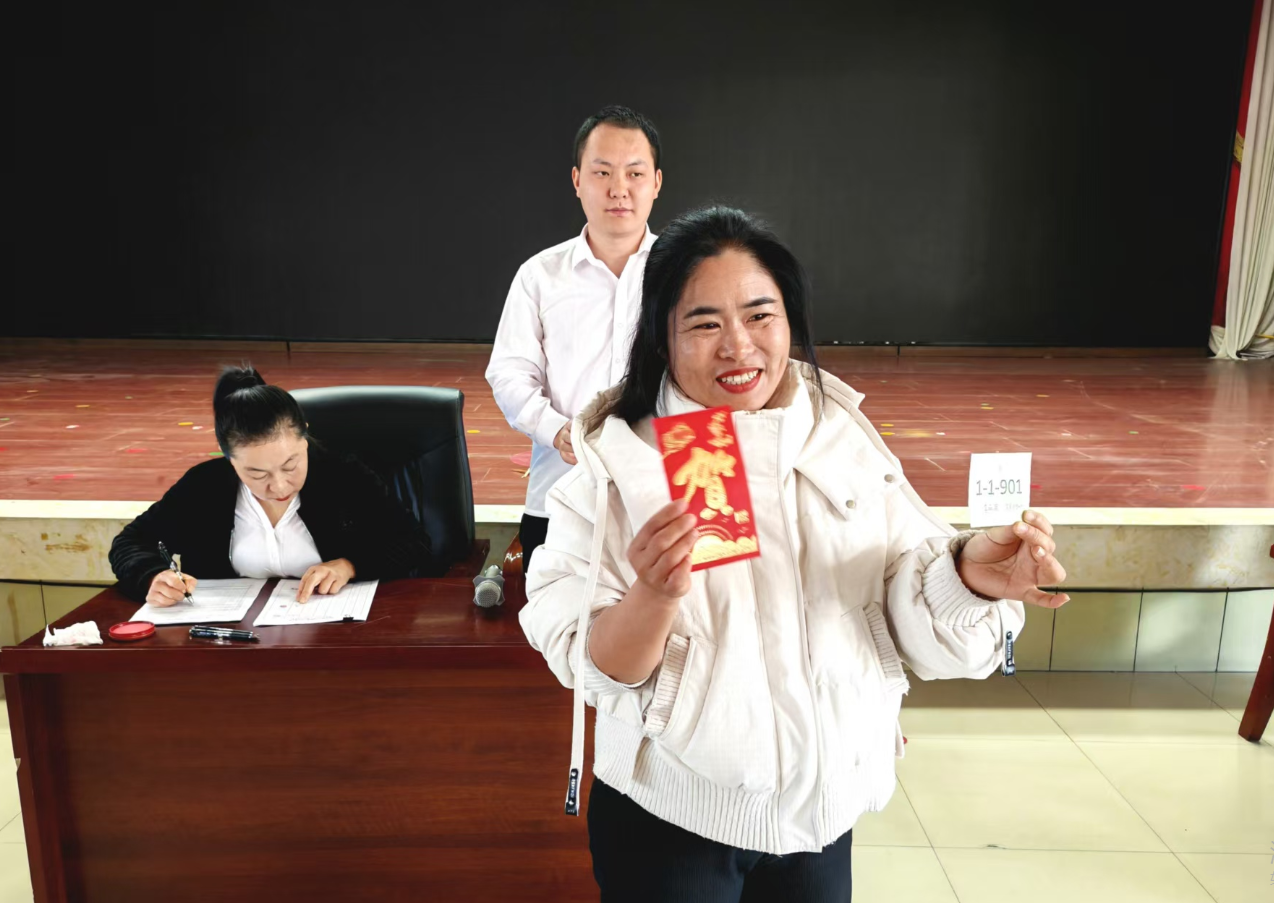 隨著主持人宣布抽號開始,現場瞬間安靜下來。按照抽號順序,大家有序走上臺前進行抽簽。居民李麗鳳激動地揮起了手:『中了中了!我家抽的9樓,李女士趕緊拿出手機拍照,要發給在外打工的家人『報喜』。『以前住的地方靠近采空區,總擔心安全問題,現在政府給我們蓋了這麼好的房子,配套設施也全,以後再也不用提心吊膽了!』拿著序號單的李麗鳳,聲音裡滿是感激。