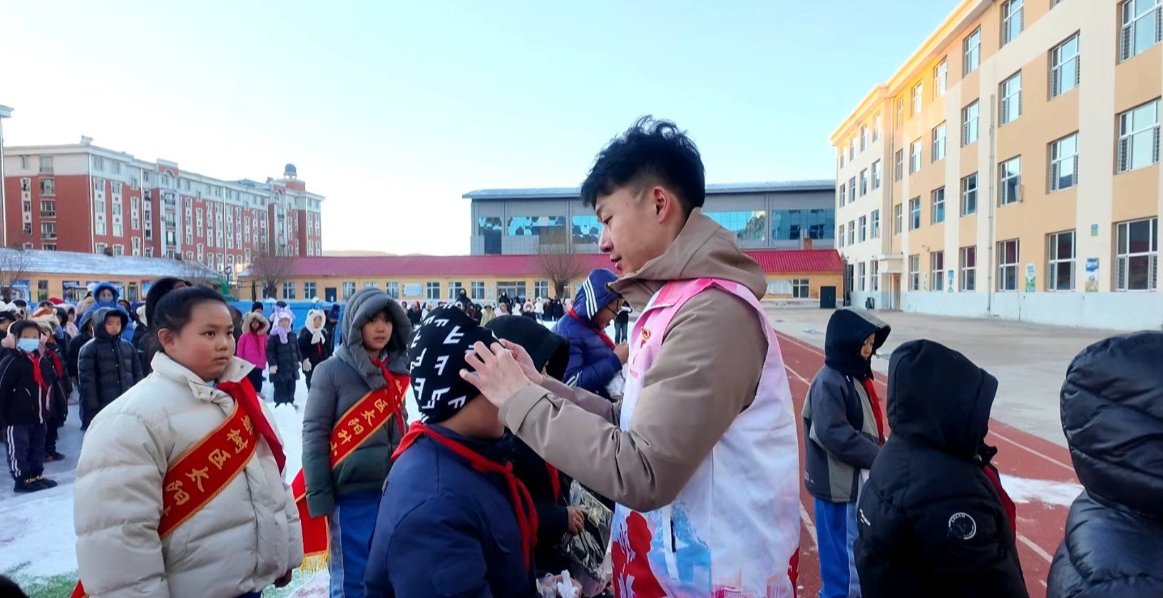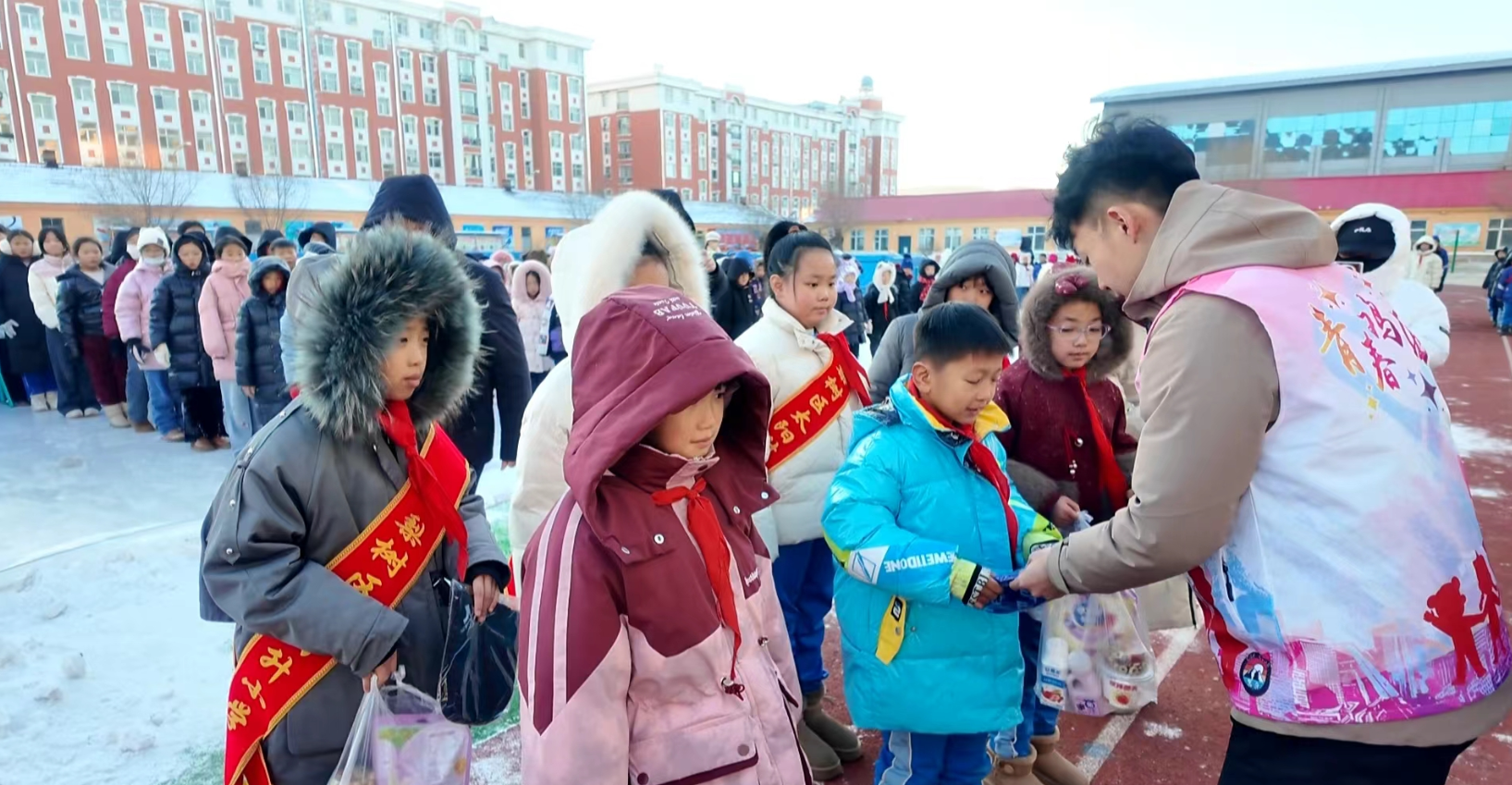 這份默默奉獻的堅守,讓雞擎志願服務隊的志願者們深受觸動。『早就聽說這所學校的冰雪運動在全市很有名氣,直到實地了解到冰場是老師們親手澆築的,纔真正懂這份「名氣」背後全是實打實的付出。』捐贈現場,服務隊隊長劉裕一邊麻利地幫教師遞過棉鞋,一邊向記者介紹,這是雞擎志願服務隊成立四年來開展的第175次志願服務,『學生需要溫暖呵護,這群默默付出的「澆冰人」更該被惦記,我們就是想讓他們在寒冷天氣裡,能多一份溫暖保障。』