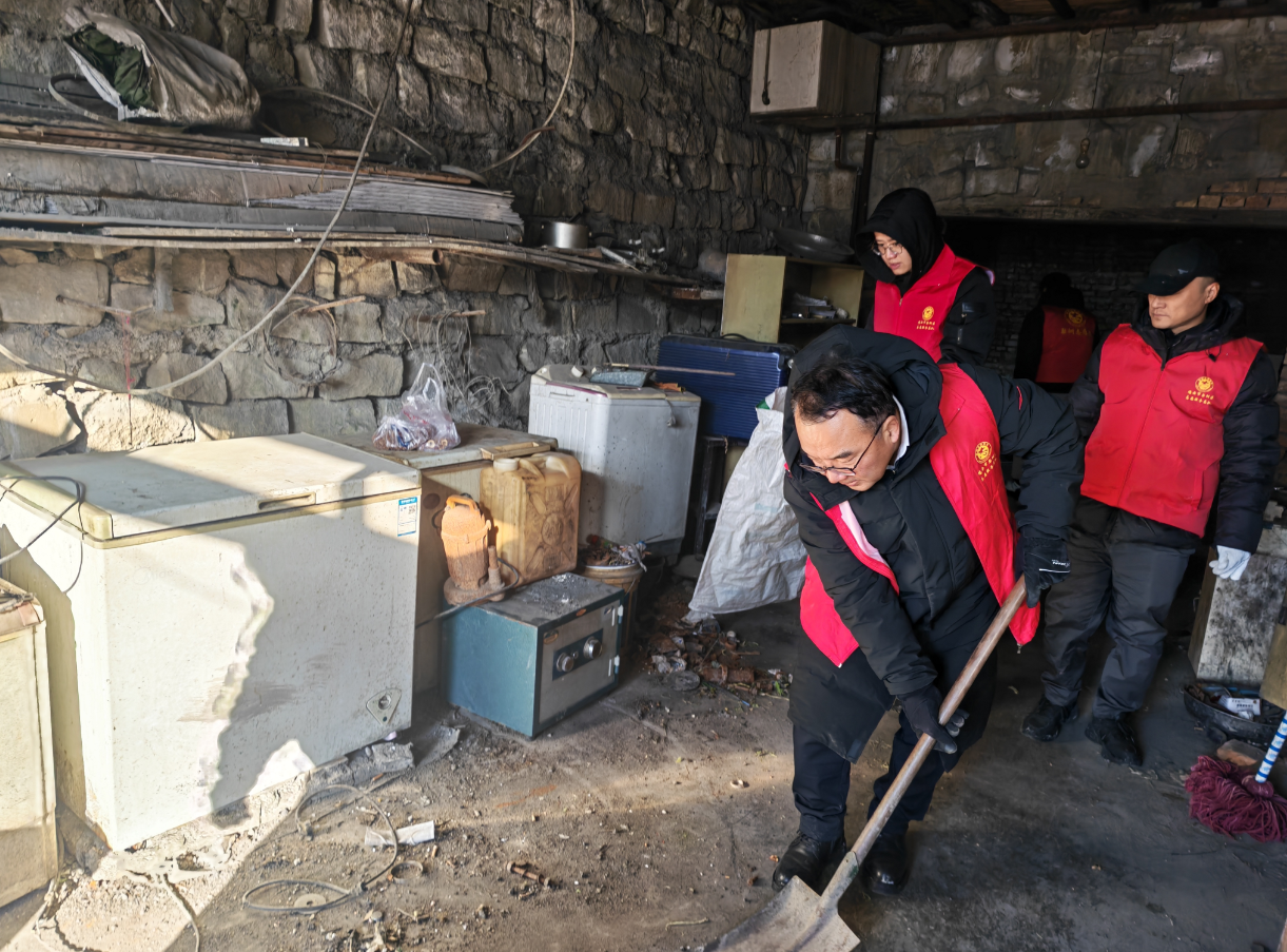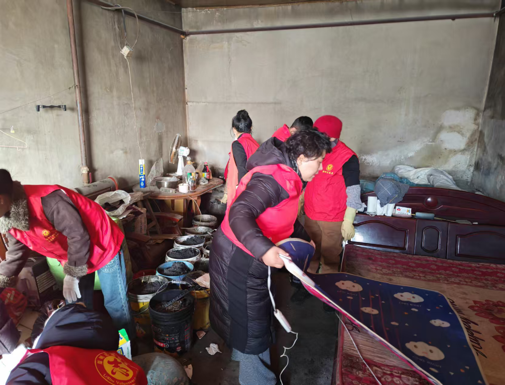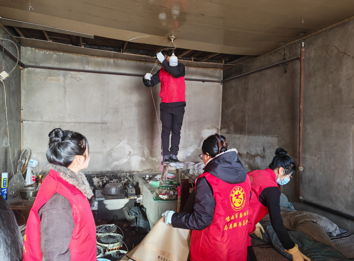 『王大爺,我們來給您收拾屋子啦!』推開門,志願者們的招呼聲打破了小屋的冷清。屋內光線昏暗,地面積著薄灰,牆角的柴火堆得零散。『現在,咱們大家按照預先設定的分工去乾』街道辦黨工委書記吳勇的一句話,讓大伙立刻忙活起來,在屋內,有人清理破舊物品,有的人拿著抹布一點一點擦拭污垢;有人踮著腳拆下泛黃的舊床單,換上帶來的新被褥;巧匠服務隊的師傅則站在板凳上扯線接燈泡,社區黨委書記陳新羽為老人燒上熱水洗手擦臉。
