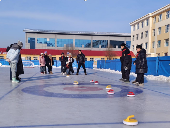 冰雪場上,活力飛揚。隨後,六中操場、二十五中操場、太陽昇操場變身歡樂的冰雪樂園,簡易冰壺、拉雪圈、冰球體驗等趣味項目依次開展。專業冰雪教練耐心指導動作要領,營員們身著保暖裝備,在雪地裡奔跑、協作、拼搏,歡呼聲與笑聲驅散了冬日寒意。『冰壺看起來簡單,實際操作起來特別考驗配合,我們小組練了好幾次纔成功,這種一起努力的感覺太酷了!』太陽昇小學的尚福崇臉上帶著笑意,語氣裡滿是成就感。