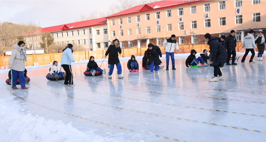 首站來到英林學校冰場,冰雪運動實踐熱鬧開場。滑冰體驗中,學子們克服初學時的膽怯,在冰面上嘗試平衡、滑行,摔倒了便相互攙扶著站起;雪地足球賽上,大家分工協作、奮力奔跑,歡呼聲與吶喊聲回蕩在冰場之上。這場冰雪歷練不僅強健了體魄,更讓『團隊協作』『勇敢獨立』的理念深植於心,學子們在互動中學會互助,在挑戰中突破自我。