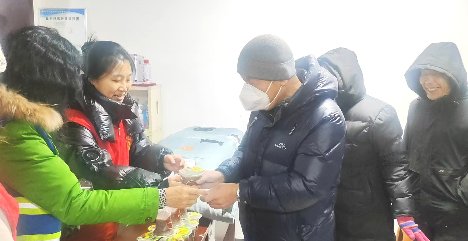 除了集中發放,社區黨委與物業還組成慰問小隊,將粥分裝送至高齡獨居老人、困難家庭中。『天這麼冷,還特意起大早爬樓送來,太謝謝了!』張大娘連聲道謝。隊員們不僅送上節日祝福,還關切詢問了他們的近況,幫忙檢查家中水電安全,將節日問候與日常關懷融為一體。