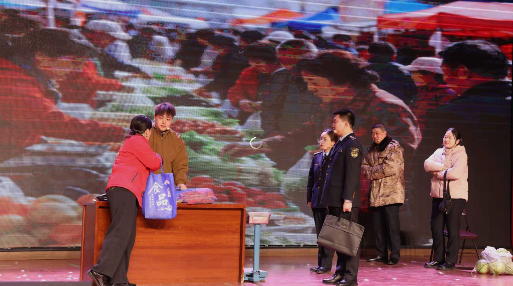 最受觀眾歡迎的當屬區市場局工作人員帶來的小品《『斤斤計較』護民生》,該劇以現實中的短斤少兩問題為素材,既普及了維權知識,又詮釋了基層工作者守護群眾利益的責任與擔當,貼近生活的演繹引得現場笑聲與掌聲交織。古箏演奏《賽馬》鏗鏘有力,再現駿馬馳騁的壯闊畫卷;情景音樂劇《月光下的小美滿》描繪了平凡家庭的幸福日常,讓觀眾在溫情中感受民生幸福。公安民警唱響的《人民警察之歌》,更是讓現場觀眾感受到平安守護的溫暖,將晚會氛圍一次次推向高潮。